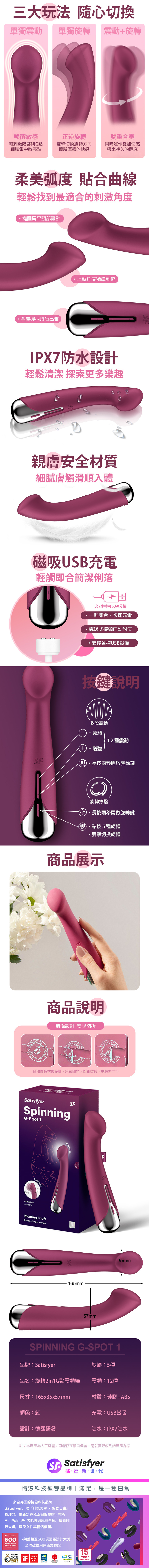 品名:Satisfyer|Spinning G-Spot 1|旋轉G點震動按摩棒 紅